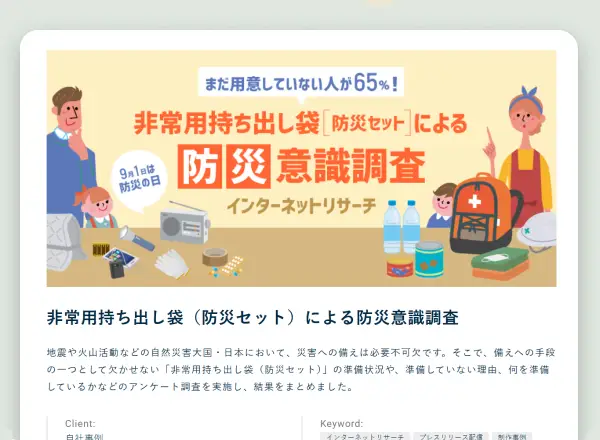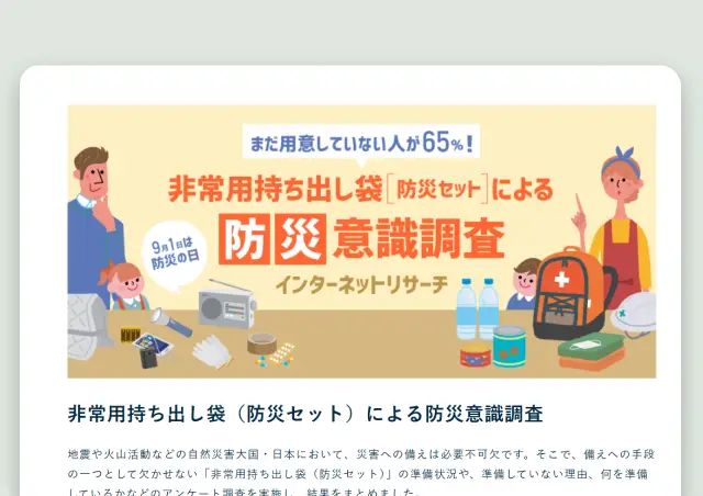 地震や火山活動などの自然災害大国・日本において、災害への備えは必要不可欠です。そこで、備えへの手段の一つとして欠かせない「非常用持ち出し袋(防災セット)」の準備状況や、準備していない理由、何を準備しているかなどのアンケート調査を実施し、結果をまとめました。