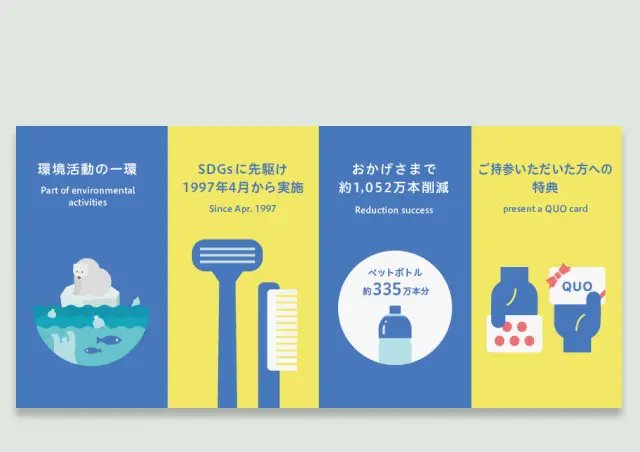 ワシントンホテル社では、使い捨て歯ブラシやかみそりの削減に取り組んでいます。 こうした取り組みを広く知っていただくため、ホテル内に掲示するポスター制作をご依頼いただきました。 エコンテでは、コンセプトの作成、ライティング、デザインまで一気通貫したサービスをご提供しました。